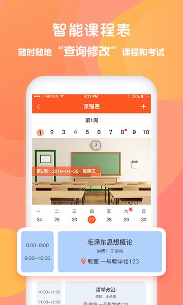 【课程表】轻松便捷的添加课程表,美观的自定义交互页面,触及深处的心灵鸡汤,让烦闷的学习也变得充满活力!