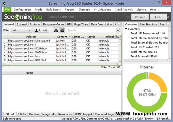 尖叫青蛙强大的地方就在于它不仅获取了网站内所有的链接,我们通过链接的就能获取到该链接的所有信息,大致包括该链接包含链接数、状态码、是否被robots屏蔽、该网页标题、标题长度、描述、关键词、发布时间等等所有的信息,分析的信息详细到只有你想不到的,没有你找不到的。