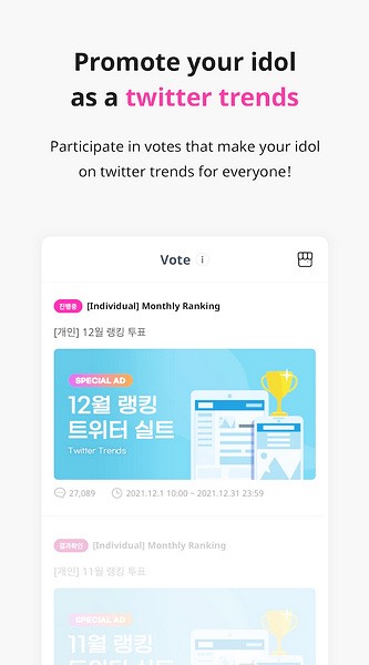 - 如果您的艺人每月在 IDOLCHAMP 排行榜上排名第一,则将提供一个月的 TV CF 和特别福利。