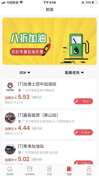 6、加油站信息陈列出来,便于用户筛选加油站的信息;