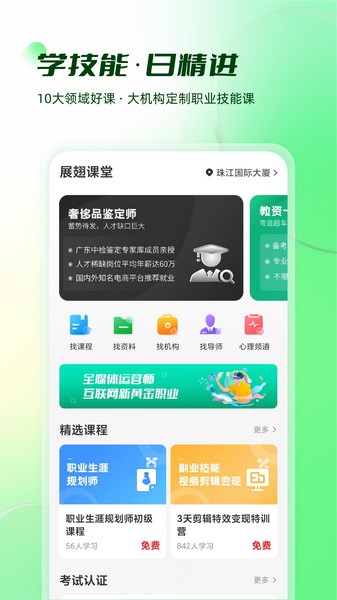 技能精进,证书加持,学历提升,名咖直播,大牌机构入驻,服务有保障