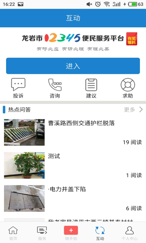 在12345服务热线基础上,推出“随手拍”,实现电话端、电脑端、移动端全覆盖,方便群众咨询问题、反映诉求、提交意见,推动政府职能部门快速反应,提升行政服务水平。