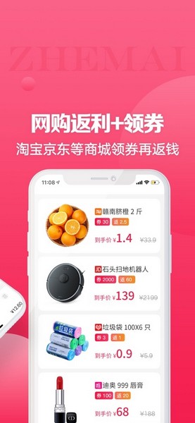 折买是一款可以帮你省钱的购物软件,这里提供了多个网购平台上的大额优惠券,让你每次购物都能省下不少钱,甚至点外卖都有红包返利。软件中每天都会由大量的优质商品进行特价出售,超低折扣等你来抢。此外这里还为新用户准备了很多新人豪礼,其中就有0元购等福利。