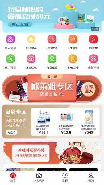 1、成小名app主打优惠购物,为大家提供了超多的最新的各种优质的商品信息,每日都会不断的更新带来;