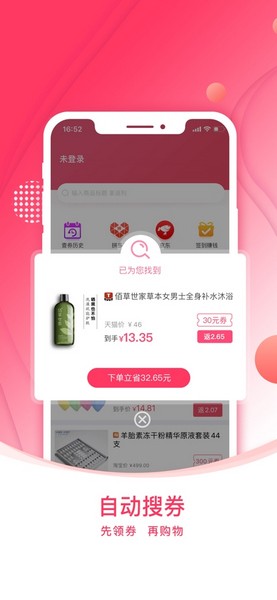 软件有几个特别的功能,比如一键搜券,直接复制链接就能自动搜索隐藏的大额优惠券,这对我来说挺方便的。还有购物返现,成功下单后还能额外拿到现金,这个返现力度还挺大的,最高能达到96%,而且提现门槛低,一分钱都能提,感觉赚了不少。