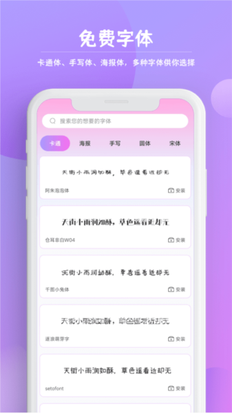 4、拥有海量的字体资源,随时随地提供多种风格,满足你的个性化需求,让你的手机界面更加独特。