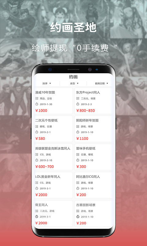 -为企划方和画师约稿提供安全的交易方式,交易过程完全“0手续费”。