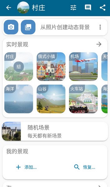 软件提供了俄式小镇、机场和火车站、山谷等非常多不同的主题,点击即可完成天气实景的更换。