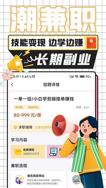 平台内兼职安全可靠,由商家直接发布,经平台审核后再发布展示;
