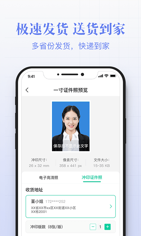 而且还有美颜功能,在保证照片真实的同时还能让皮肤更好看。你可以换背景色、调整光线,甚至还能自己定义尺寸,真的是太强大了!如果需要实体照片,还可以直接发货到家,方便极了!