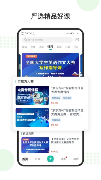 赛氪APP是一款专为高校学生打造的竞赛资讯平台,涵盖了科学、工程、艺术、商业等多个领域的3万多项比赛信息,方便用户快速找到适合自己的赛事并在线报名。除了提供丰富的竞赛资源,赛氪还搭建了一个活跃的学生交流社区,用户可以和其他学生讨论各种话题,结识志同道合的朋友甚至组队参赛。我觉得这对大学生来说真的很有帮助,毕竟大学生活不仅仅是在课堂上学习,多参加比赛和活动还能提升自己的能力。
