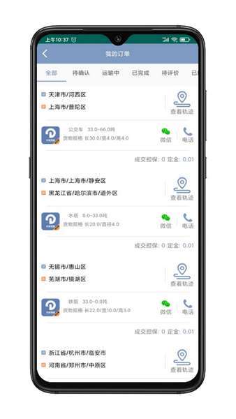 4、在我的订单页面,就能查看所有运输的订单,还能查看轨迹