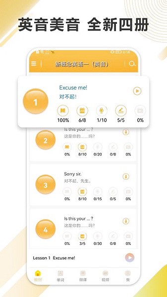 新概念英语全四册app是一款非常有趣的英语学习类软件,作为一款世界闻名的英语教程软件,其中涵盖了超多不同类型的英语教材,让枯燥的英语内容变得有趣,可以让大家在学习的过程中能够更加轻松哦。除了丰富的英语教材和题库之外,其中还有着十分专业的口语测评功能,可以及时的纠正大家的口语,更加轻松的拥有一口流利的英语口语。