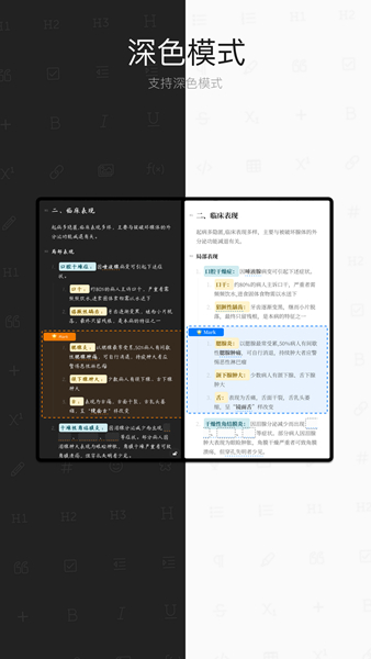 功能强大支持 Latex数学公式、表格丶外框丶备注丶多种颜色高亮