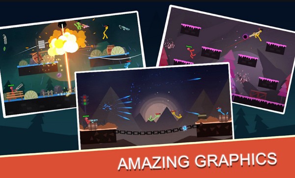 1、在每种比赛模式中都能体验精彩的对决,让更多火柴人参与进来,一起来争夺射击王者称号;