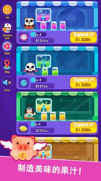 3、当赚取一定的佣金,将可以升级你的店铺,让你的果汁店遍布城市的每个角落。