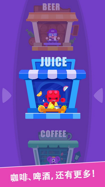 为客人准备一份惊喜吧!使用各种美丽的瓶塞、贴纸去装饰你的果汁,放入冰块,冰镇果汁做好啦!卖给客人,赚来的金币还能解锁更多的道具哦!