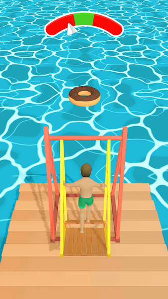 游戏的核心玩法是在海面上用秋千跳到救生圈上,需要掌握好力度和角度才能精准落点。随着关卡推进,难度会逐渐增加,跳水台越来越高,还有各种障碍物考验玩家的反应力。如果能成功完成高分跳跃,还能解锁新皮肤给角色换装。