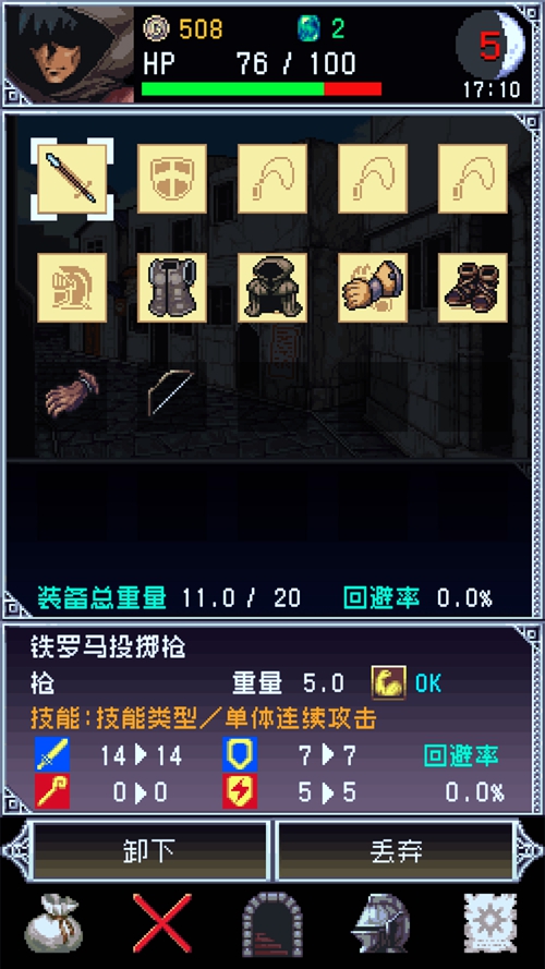 tips:装备搭配要注意重量噢,超重后整体状态会下降