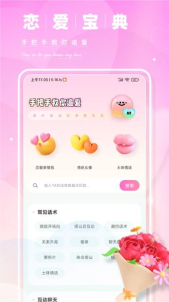 应用还支持根据聊天进展分类查找话术,甚至可以根据用户和对方的兴趣推荐合适的头像和表情包,让交流更有趣味性。对于那些想要提升恋爱技巧的人来说,这个软件真的是个不错的选择。而且它还有专业的恋爱教程,手把手教你如何更好地与另一半沟通,避免走弯路。