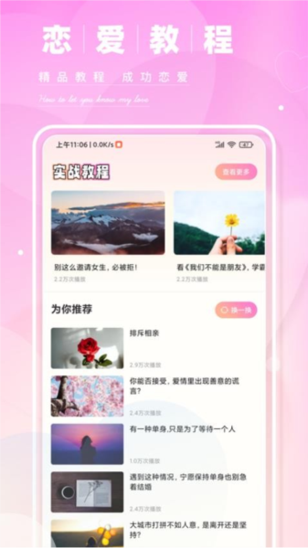 实战教程: 诸多恋爱教程,可自由在线查看学习,提升自己的恋爱能力。
