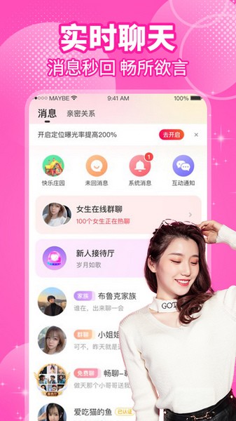 甜美可爱妹子、温柔知性小姐姐、善解人意大姑娘,海量真实单身女性,聊天回复率高,开始甜蜜邂逅之旅