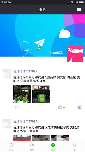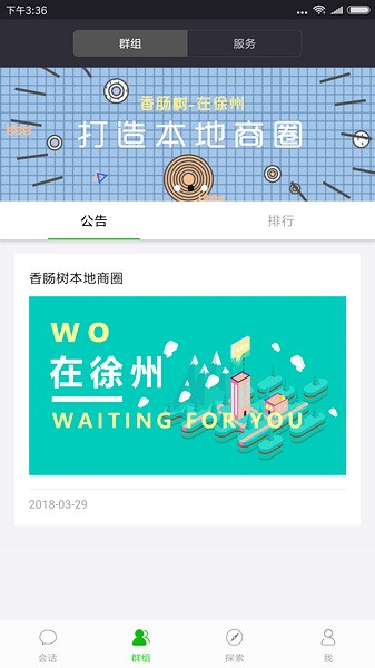 这个app还有不少特色功能,比如特殊的群聊会话标记,可以区分群聊和私聊;群组中心不仅有群组管理,还有很多生活服务信息;探索页面有很多原创动态内容,丰富你的社交体验。此外,它还打造了多样的本地商圈,覆盖吃喝玩乐等生活需求,非常方便实用。