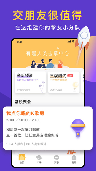 主打语音连麦交友,直接用声音去碰撞,用声音去认识别人,扩大自己的朋友圈;