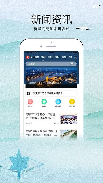 今日高邮app是一款专门为高邮市的人民们打造的新闻资讯软件,软件内为大家提供了非常丰富的本地服务,里面为大家提供了高邮当地的文化、时政、经济、民生、社会等新闻内容,可以满足广大群众们的使用需求,此外市民们也可以在这里观看手机直播、收听高邮电视台广播、电台等节目,让大家可以随时随地看到最精彩的内容,享受到最优质的体验效果。