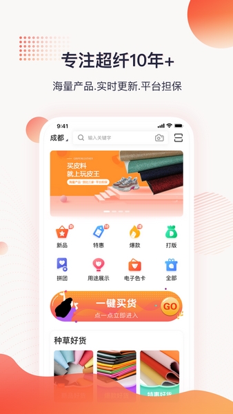 玩皮王是一款主打超纤皮产品交易服务的软件,其功能相当强大,整合了超纤皮产业链资源上下游,无论是线上线下都能提供相当丰富的服务,例如产品交易、服务交易、金融服务等,为你带来更多帮助,不仅如此,其更能支持通过用途、属性、图片、纹路等信息查找产品,为你带来更多便利!