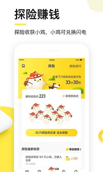 这个app有几个特别的功能:你可以把闪电股折算成钱提现到微信钱包;通过闪电鸡去淘宝、天猫购物还能获得闪电股;全民网购的时代,股价还一直增值,每天都有收益。订单越多,闪电股价值越高,感觉像是边逛边赚钱,挺有意思的。