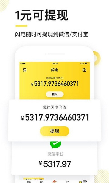 1、随时可以将闪电股折算成金额提现至你的微信钱包。