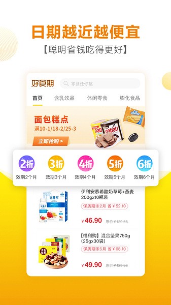 首先,好食期app将商品的保质期透明化,用户在购买时可直观查看,为选择提供更多的便利。其次,独创的“日期越近越便宜”动态定价模式,将商品效期与价格巧妙挂钩,为用户带来更实惠的购物体验。而通过发起和参与拼团,用户可与朋友、家人等一同享受更低价格的拼团购物,实现更大程度的省钱。最为重要的是,好食期app提供正品保证,通过PICC承保,与品牌食品厂商合作,为消费者购物提供更高的安全保障,让每一位用户购物更加放心。