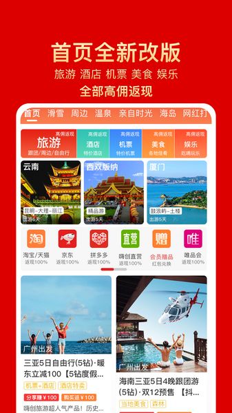 另外,嗨创app还提供旅游和本地生活服务,会员在平台预订旅游或者消费都能享受高佣返现,这也是一种不错的省钱方式。总的来说,这款软件挺适合喜欢网购又想赚钱的用户,如果你也感兴趣的话,可以下载试试看!