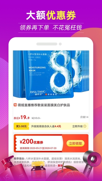 花花返利特价版APP是一款主打优惠购物分享赚钱的软件,其采用社交导购模式,网罗了各大电商平台的优惠产品,衣食住行全覆盖,更有隐藏优惠券可供领取,购物立减更优惠,成功购物后还可领取返佣福利,轻松省省省!不仅如此,若是将平台产品分享给好友,也同样可以收获返利,若是不知道如何宣传的话,平台还准备了大量素材,让你轻松营销!