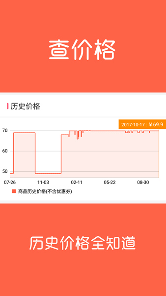比价猫优惠券app告诉您过去180天价格浮动情况,杜绝假促销。