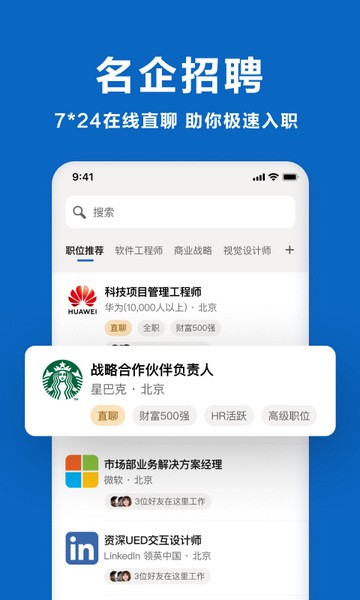 领英职场app是一款实用的求职招聘平台软件,软件内为用户们提供了各种各样海量的优质岗位,帮助每一个人都能找到适合自己的工作。领英职场app使用的是智能化的匹配推送,为求职者推荐适合他们的工作职务,为企业公司等推送与岗位所匹配的人才,让大家都能找到自己满意的工作和员工,让求职者就业更简单,让招聘者寻找人才不再难,给大家带来最棒的人才市场服务体验,有需要的用户可以下载体验哦!