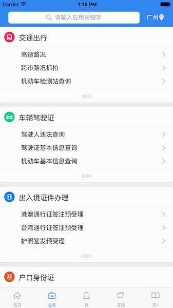 5、交管类:驾驶证、机动车、驾驶人违法、机动车违法信息查询。