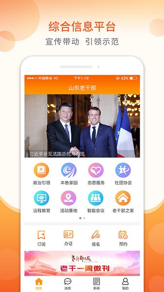 老干部APP客户端-是专门针对离退休老干部设计,通过定向推送专属消息,电影预约等实现精准服务,通过新闻和各单位宣传模块来充分展示老干部丰富多彩的生活,也将所有与老干部相关工作整合到一个信息平台上,让老干部通过APP随时随地相互了解和相互学习,真正做到宣传带动和引领示范