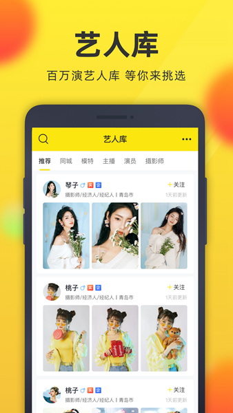 在线找模特、找艺人,在线制作模卡,在线接通告。
