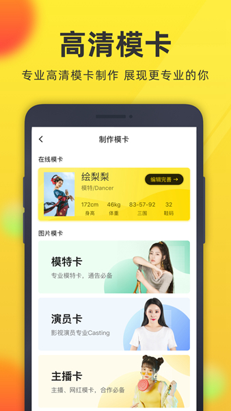 微模卡APP是为模特与演绎艺人才推出在线模卡制作工具与招募演艺人才服务平台。