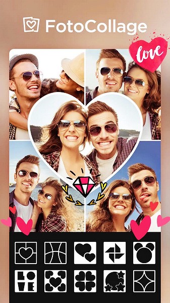 除了基础的拼图功能外,FotoCollage还提供了丰富的个性化选项。用户可以自由切割图片,将其塑造成各种可爱或独特的形状,并应用多达80多种的排版与样式。这些精心设计的滤镜和模板不仅能够增强图片的视觉效果,还能帮助用户表达更多的情感和创意。无论是家庭聚会、旅行照片还是日常记录,FotoCollage都能轻松应对,为用户提供无限的创作空间。