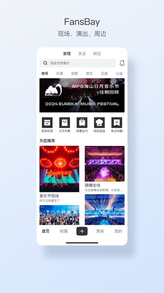 FansBay官方正版是一款专为追星粉丝准备的手机购票和社区软件。这款软件可以为各家粉丝提供最新的明星演唱会购票服务,第一时间同步最新的票务信息,粉丝可以设置关注来及时获得通知。粉丝用户可以在平台上设置抢票来提升自己的抢票成功率。而在购票之外这里也有供粉丝之间交流的社区版块,并且有时候明星本人会来到社区来与粉丝互动。