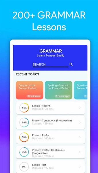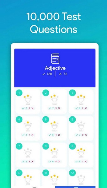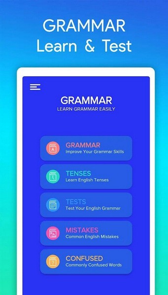 应用程序内容包括700多个语法点,分为3个级别,涵盖几乎英语水平测试,以帮助练习和加强您的英语语法技能。