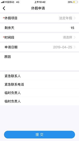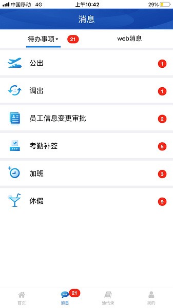 3、企业员工在移动终端安装该产品后,可随时随地完成企业通讯录查询,休假、公出的申请审批等操作。