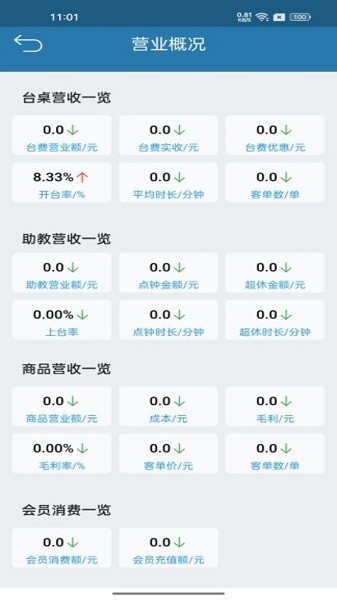 全方位展示球房数据,涵盖营业额、台桌、助教、商品、等多个维度