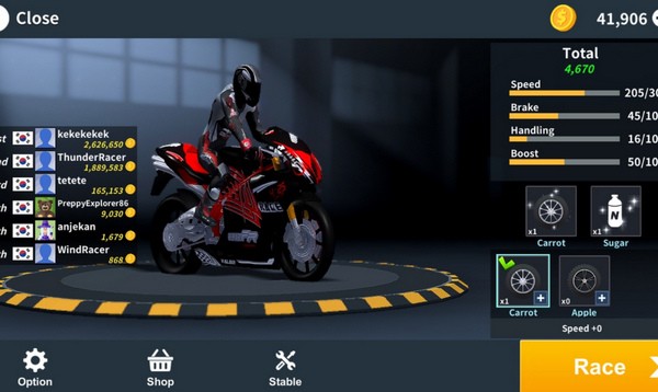 2.根据你自己的喜好去改变赛车的外观和性能,享受不同的摩托触感吧!