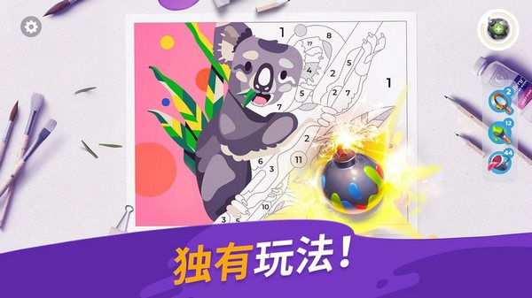 涂色本和装饰是一款休闲涂色类手游,其画风精美细腻,玩法丰富趣味,不仅拥有丰富的关卡玩法,更有精彩的剧情故事等待玩家发现,在这里玩家将前往绘画作品,可以自由为各种画面进行填涂颜色,多种不同类型的关卡等你挑战,在完成后,还能获取奖励用以翻新破旧的房屋及画廊,乐趣无限!