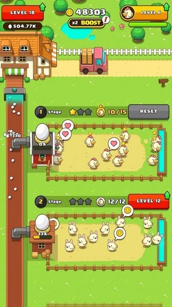 生产的蛋足够多才能解锁更多农场,赚取更多的钱。