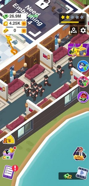 2、游戏中玩家还可以雇佣到各式各样的员工,开通特殊服务,黑人抬棺,欢送死者。